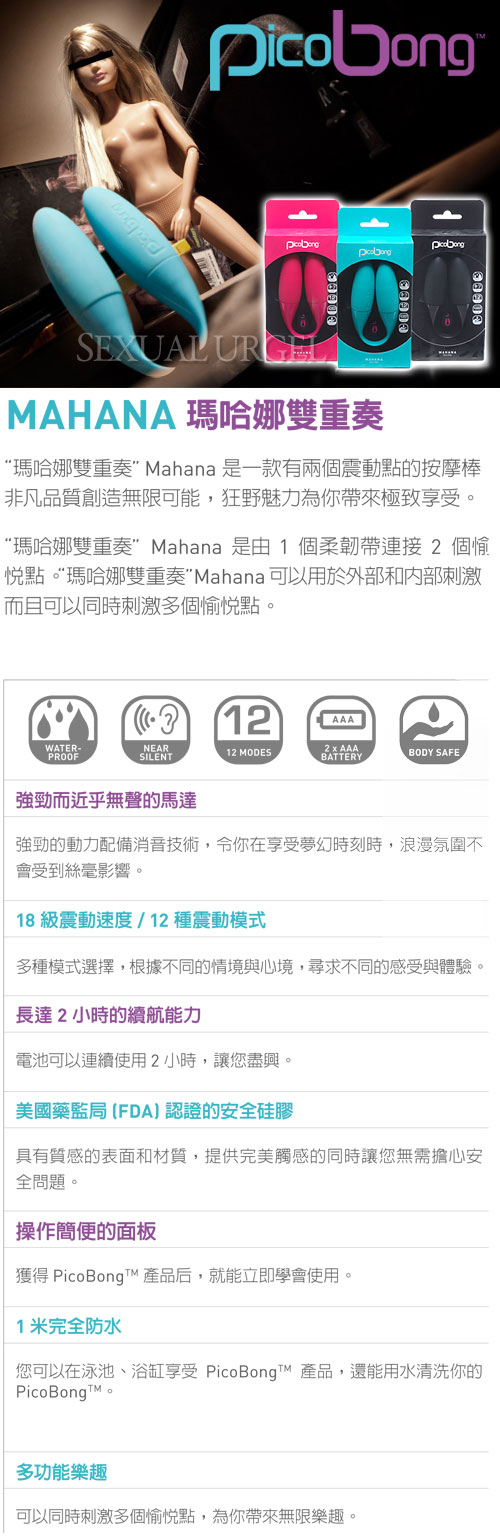 .主商品:瑞典PicoBong-MAHANA DUO VIBE瑪哈娜 雙震動G點按摩器-黑*1