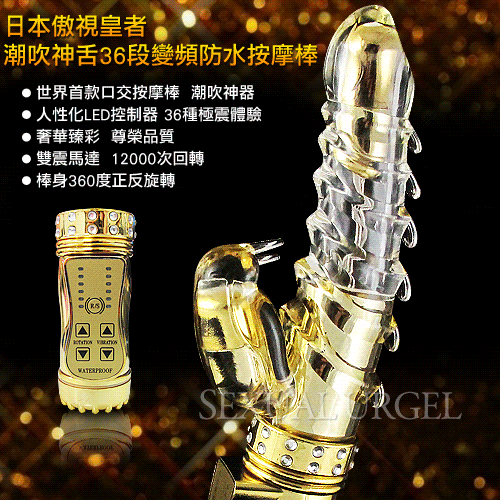 日本傲視皇者-潮吹神舌36段變頻防水按摩棒-皇家臻金