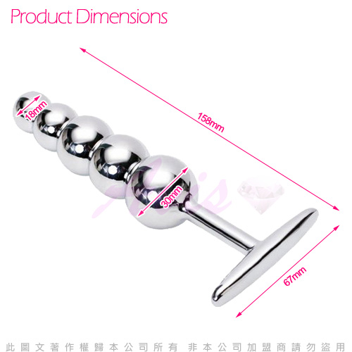 整體為柱體5連珠形狀,全長15.8cm,最大直徑3cm,頂端的圓珠,會帶給你那種若隱若離的酥麻感覺,讓你無法抵禦他那超凡的魅力。