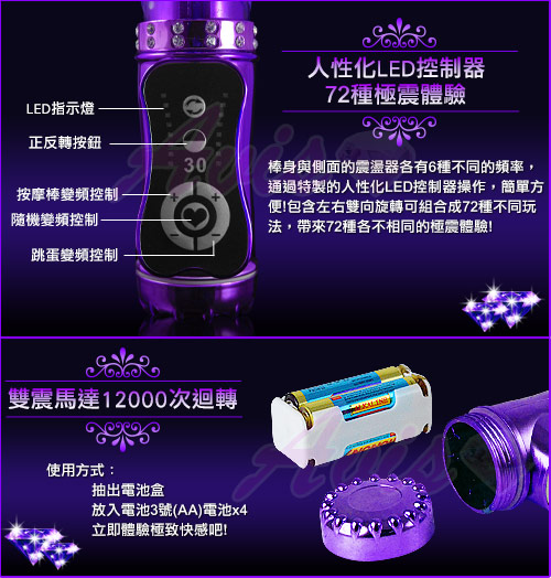 .主商品:雪豹突擊-電池/110V/USB 三用頂級多功能滾珠按摩棒-紫 *1