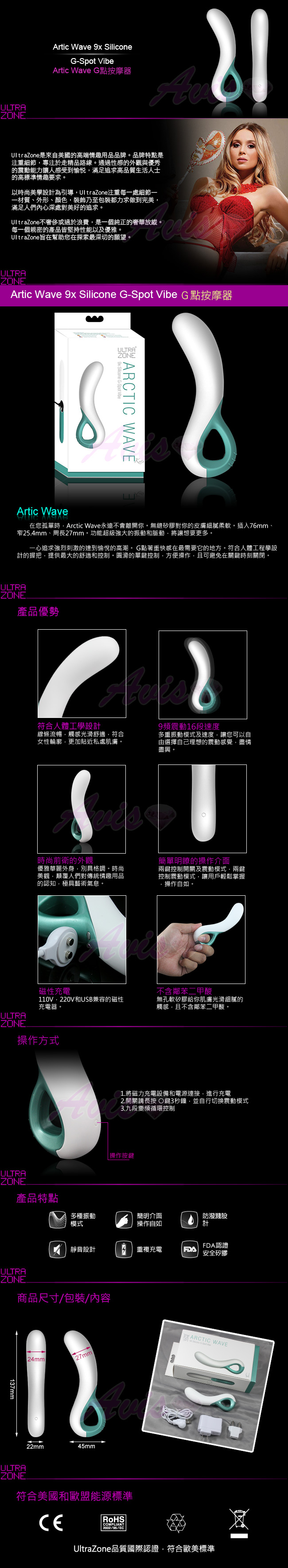 美國Ultrazone-Arctic Wave 磁吸式充電 9X16段G點按摩棒
