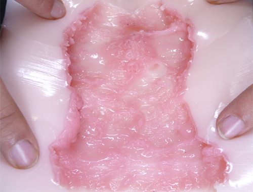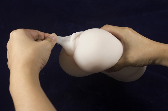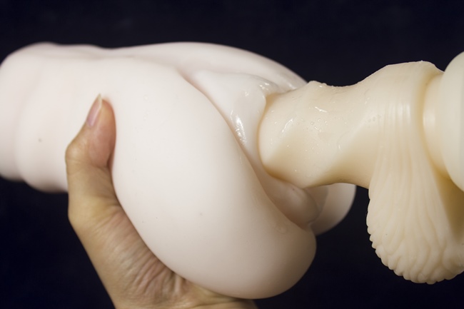看得出來,名器相當有彈性名器本身有些許硬度,並不是軟趴趴的矽膠,所以拿起來的感覺是又厚又有彈性