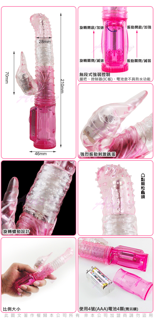 IC微調式波形轉動按摩棒,強弱快慢任您掌控,具旋轉及震動功能