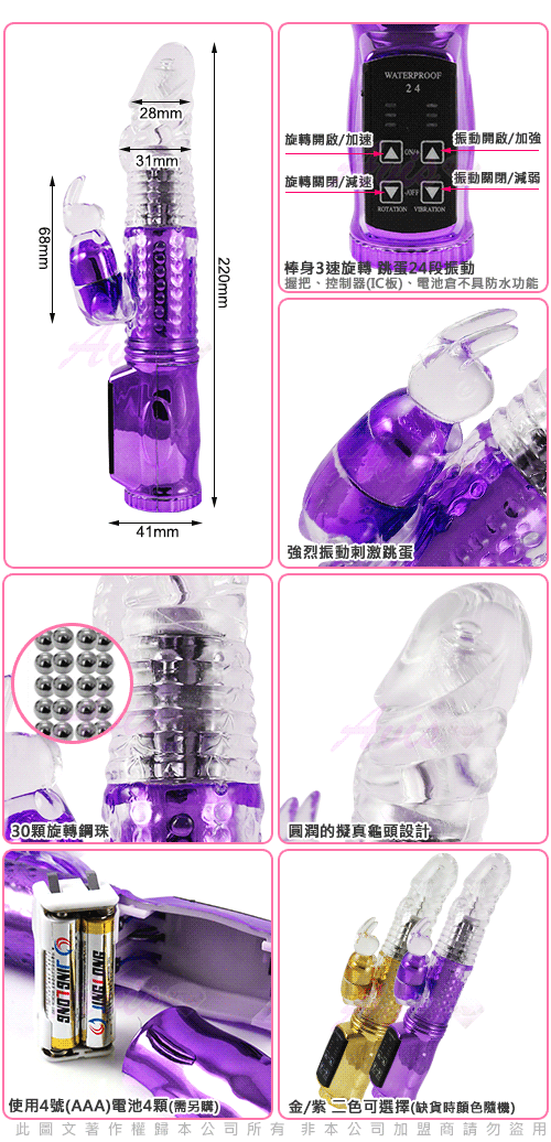.商品名稱:第三代-魔幻兔兔-電鍍款 72段 滾珠變頻G點按摩棒-紫*1