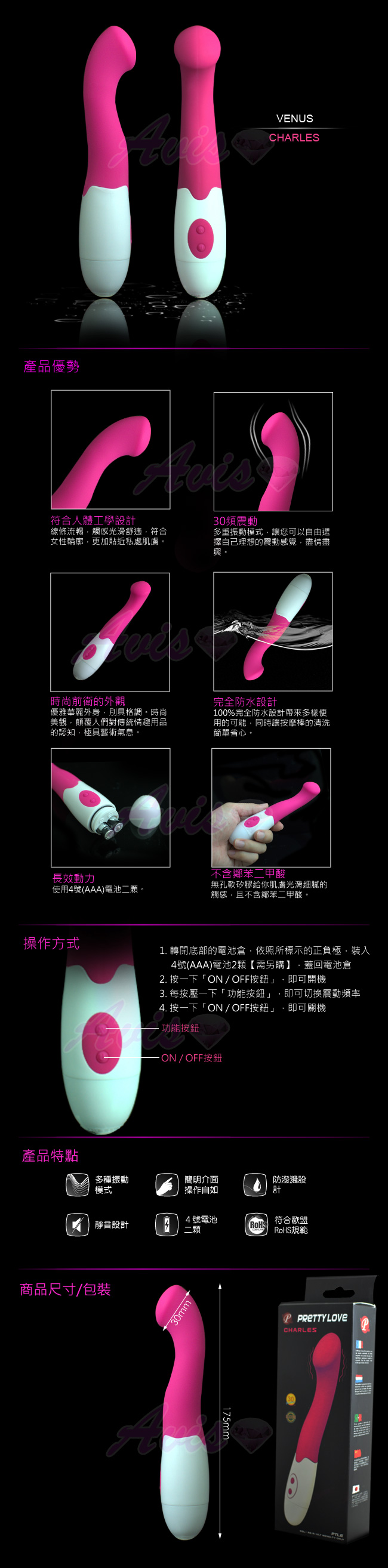 .主商品:Charles 查理斯 30頻 時尚精品智能按摩棒x1