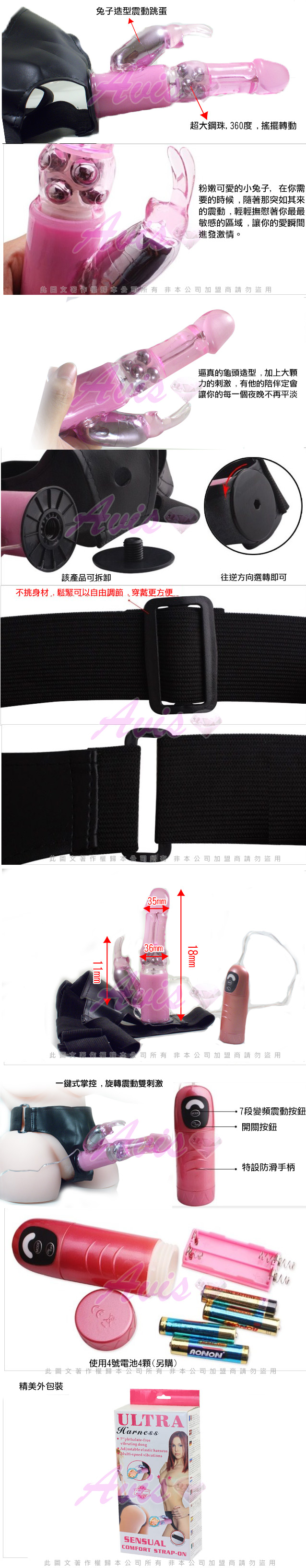 .主商品:女王至尊兔 7段旋轉滾珠穿戴式按摩棒(可拆下單獨使用)x1