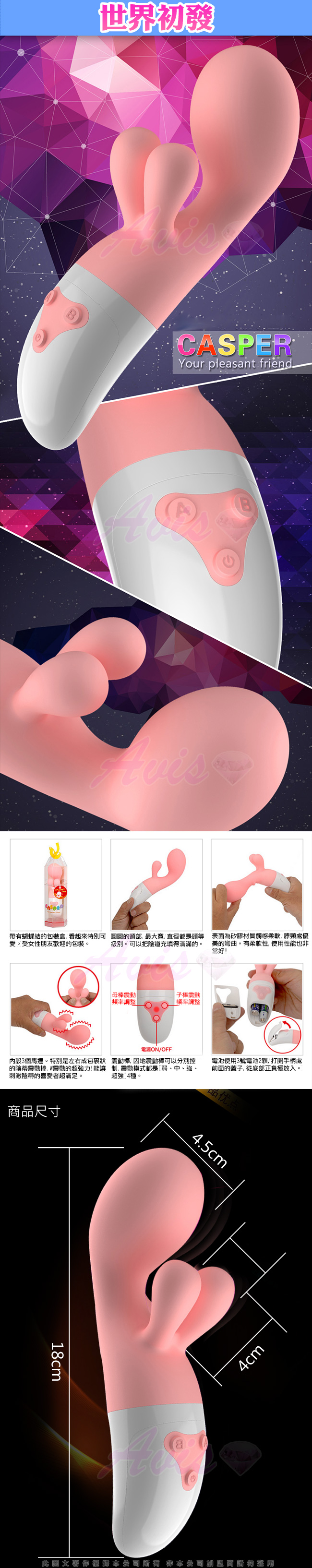 .商品內容:日本RENDS CASPER 甜蜜小精靈 4段變頻 三頭強震G點按摩棒