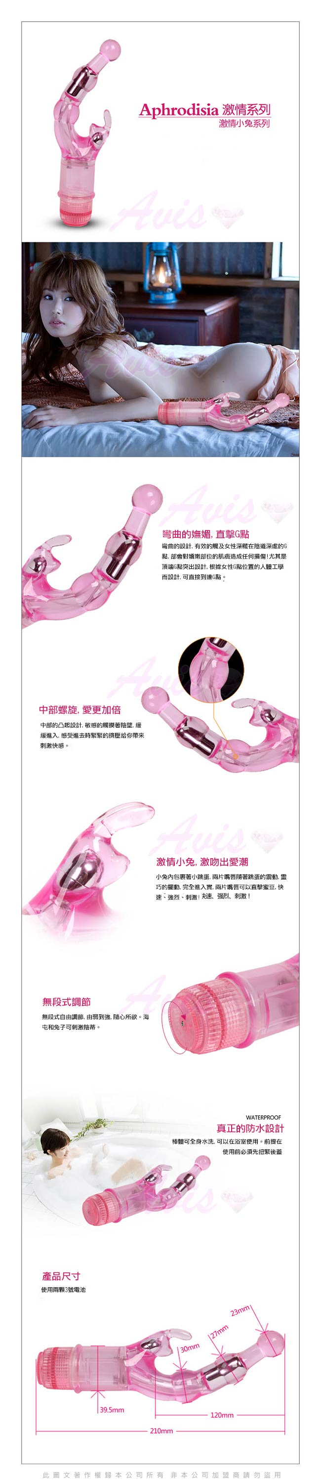 .商品名稱:APHRODISIA 冰晶之兔 雙G點高潮電動按摩棒-粉  *1