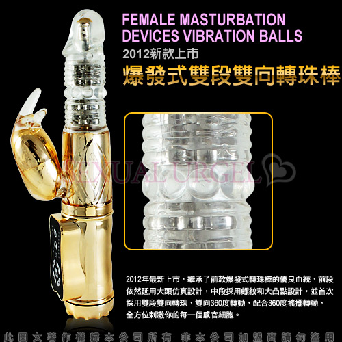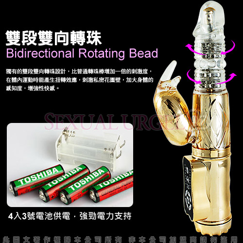 採蜜教主-100頻防水靜音潮吹雙向轉珠按摩棒-金