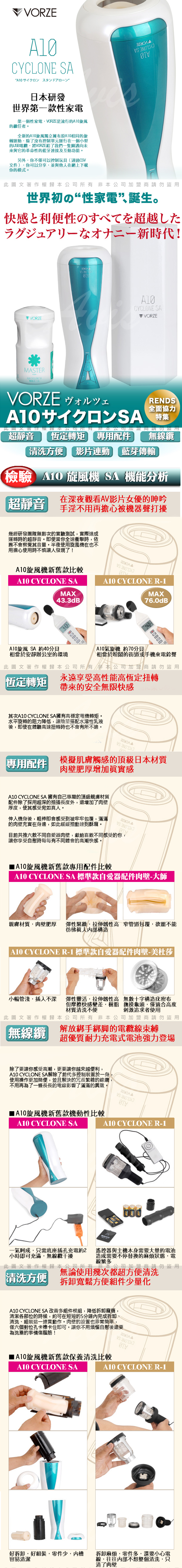 1、日本研發第一個性家電,VORZE是流行的A10旋風機的繼任者,全新的A10旋風獨立擁有原本A10相同的旋轉運動,A10 CYCLONE SA視頻互動飛機杯以超靜音,AV片同步和無限變化為最大賣點