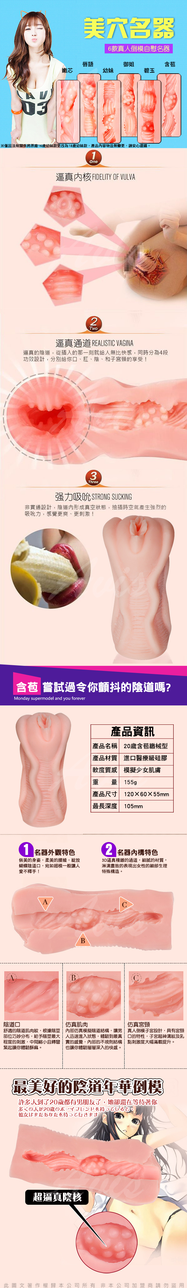.主商品:美穴名器 仿真吸夾 自慰器 20歲含苞 *1