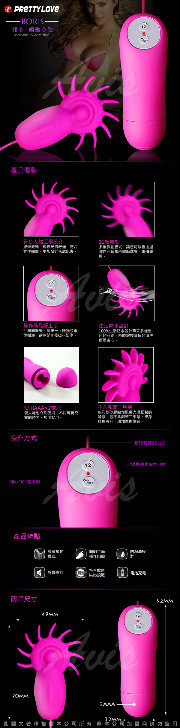 .商品內容:BORIS 風輪火轉 超靜音12變頻快感 跳蛋刺激器