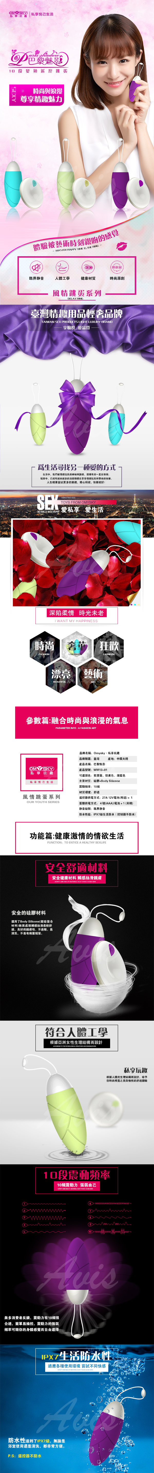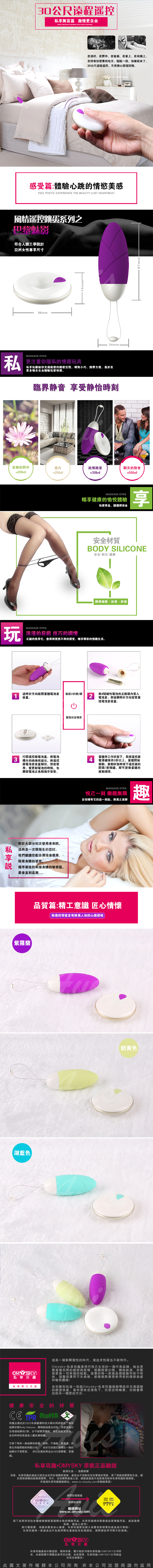 .主商品:omysky 巴黎魅影 10段變頻無線遙控防水跳蛋 紫色 *1