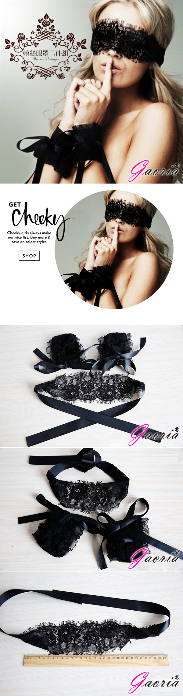 .商品內容:【Gaoria】格雷先生的約會  夫妻調情捆綁 蕾絲眼罩+手圈