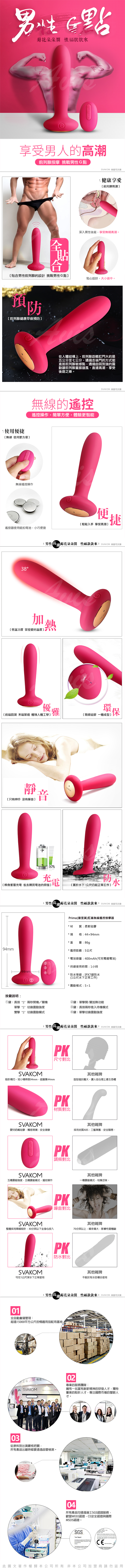 .商品內容:美國SVAKOM Primo普里莫 男用加溫肛塞無線遙控 前列腺按摩器