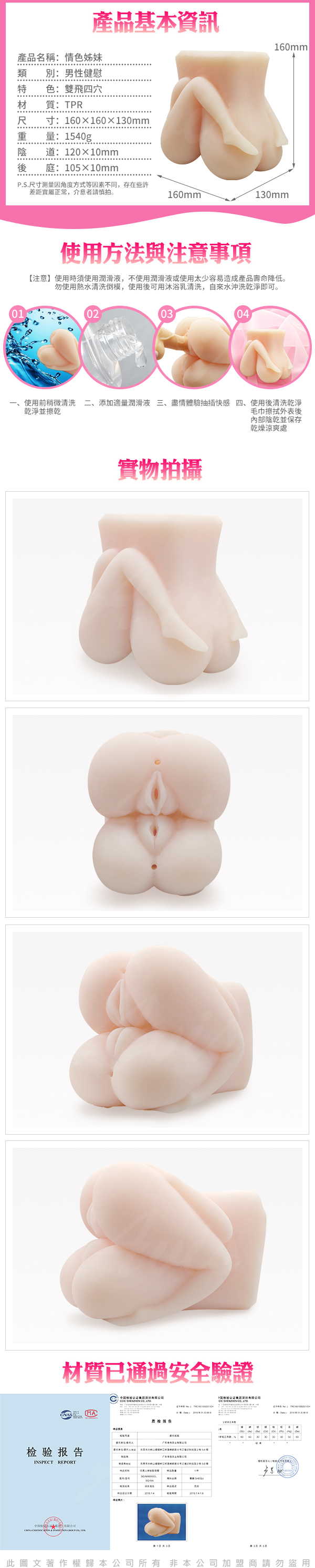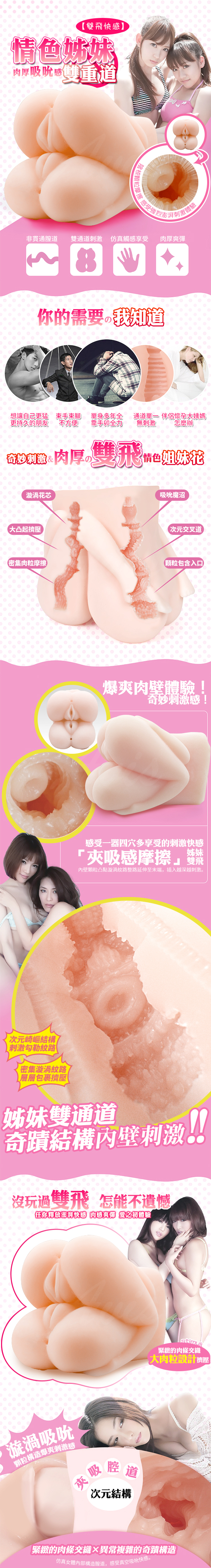 .商品名稱:3P款 情色姊妹 雙飛 上下一起 雙人四穴倒模仿真入口 自慰名器