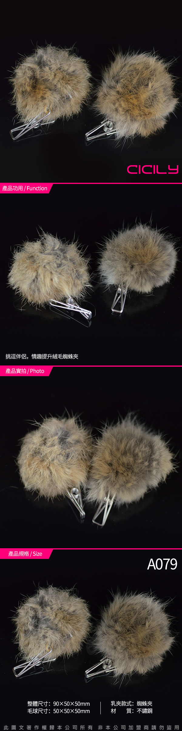 .商品內容:虐戀精品CICILY 絨毛蜘蛛 SM情趣 強力乳夾