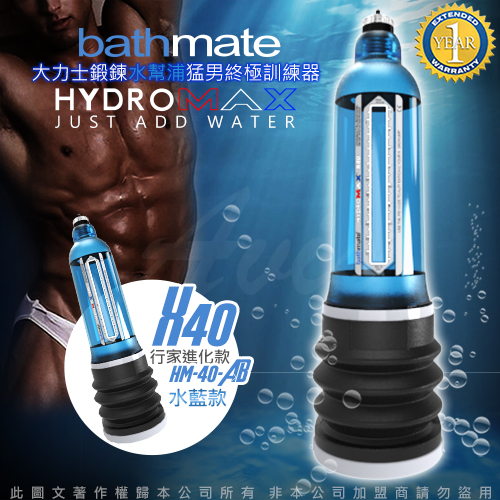 英國BATHMATE HYDROMAX X40 大力士鍛鍊水幫浦終極訓練器 水藍 行家進化款 HM-40-AB