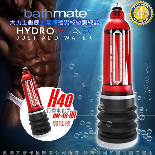 .商品內容:英國BATHMATE HYDROMAX X40 大力士鍛鍊水幫浦終極訓練器 瑰紅 行家進化款 HM-40-BR