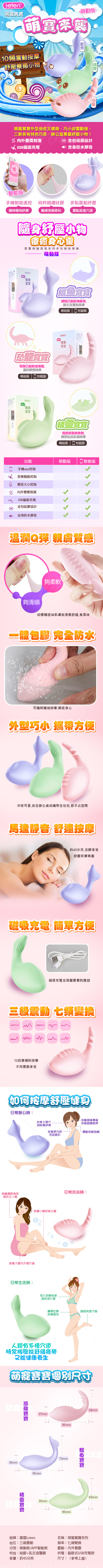 .商品名稱:香港LETEN 萌寵寶寶 10段變頻 多功能舒緩按摩器