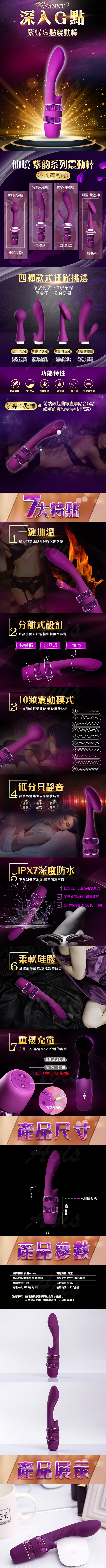 .主商品:Sanny仙境-R1紫蝶 一鍵加溫 10段變頻 G點震動按摩棒 可多頭替換