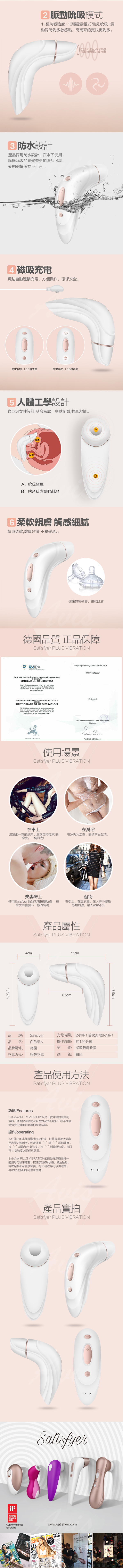 .商品內容:德國Satisfyer PRO PLUS VIBRATION 白色戀人 女性私處吸吮 高潮按摩器