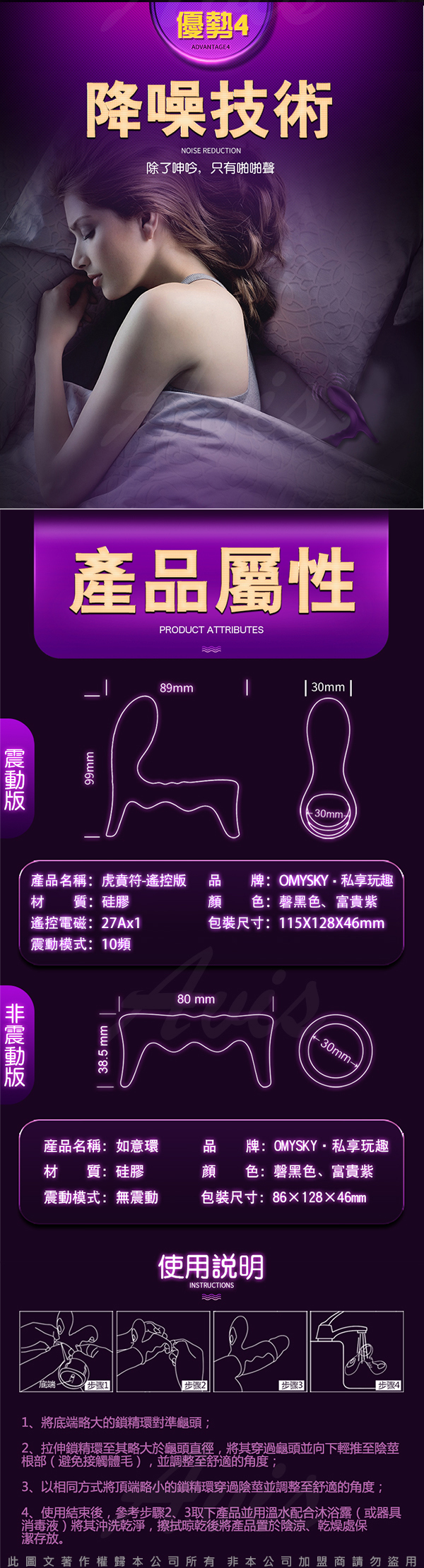.商品名稱:omysky-虎賁符 雙震10段變頻柔軟矽膠鎖精環-黑色 遙控款