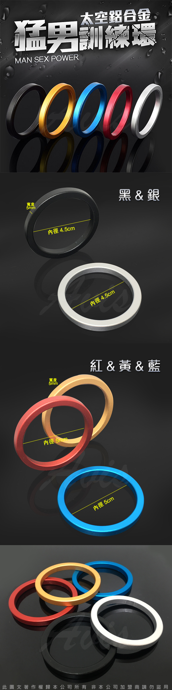 .主商品:太空鋁合金猛男訓練環 黃 4.5CM