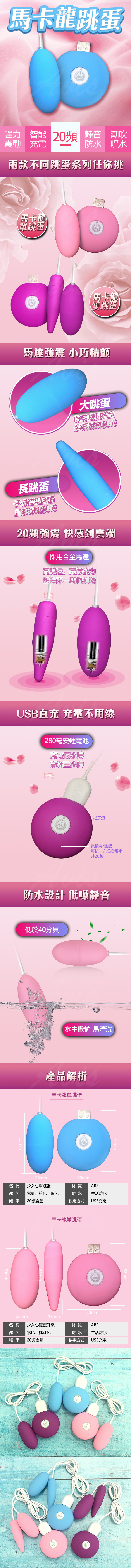 馬卡龍USB充電20頻升級長短雙跳蛋 粉
