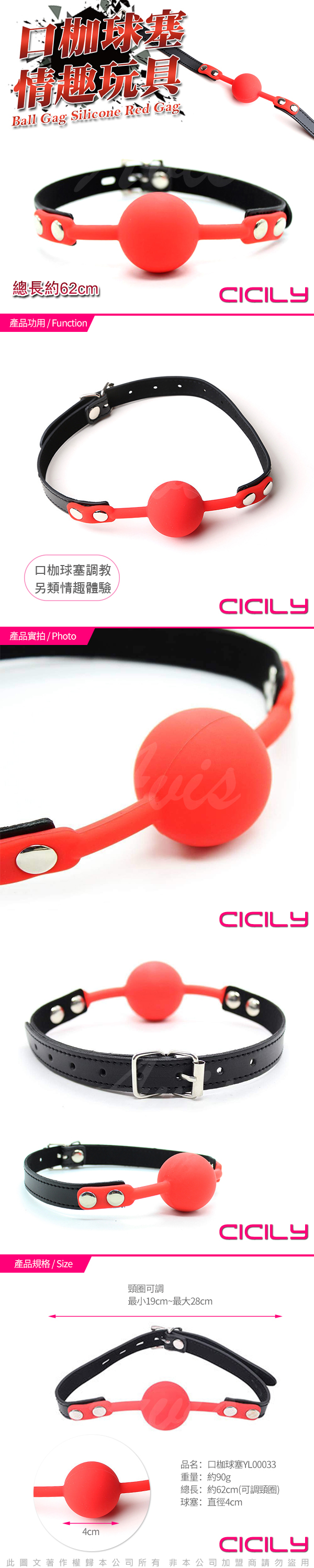 .商品內容:虐戀精品CICILY一字型舒適矽膠口塞球-紅