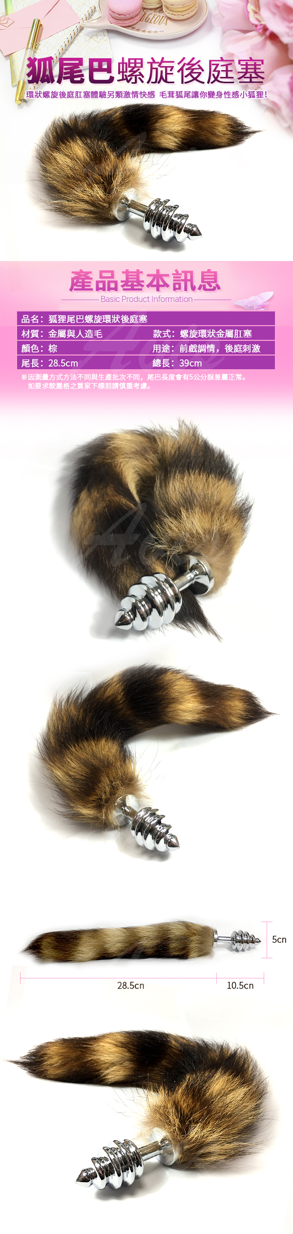 .主商品:小小狐狸精尾巴+不銹鋼後庭肛塞 螺紋造型