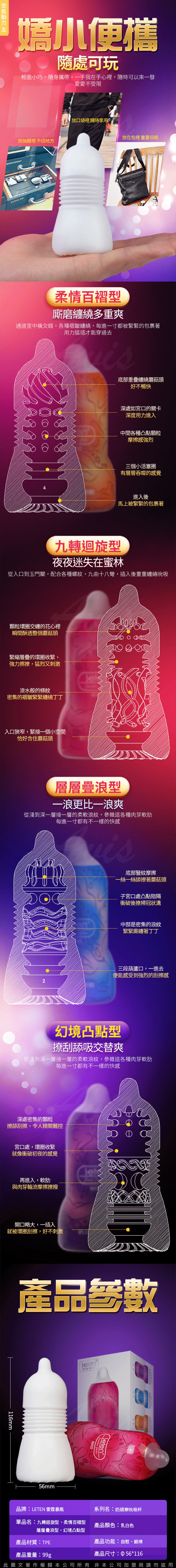 .商品名稱:Leten-奶頭樂吮吸飛機杯-幻境凸點型 紫