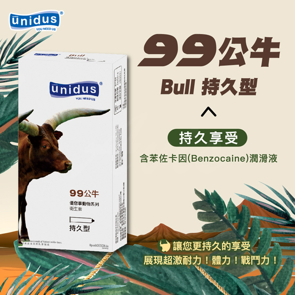 unidus優您事 動物系列保險套-99公牛-持久型 12入