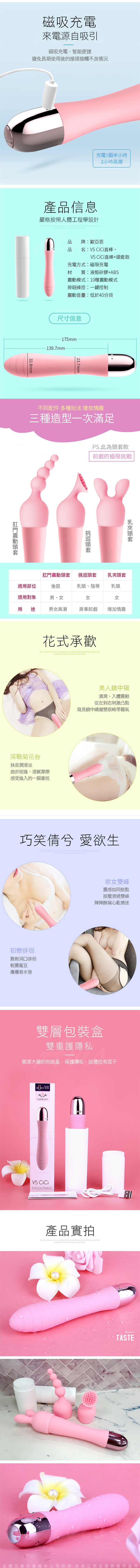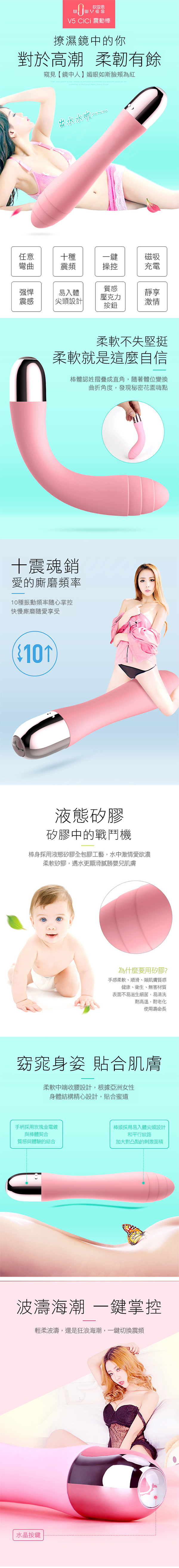 品名:WOWYES CiCi V5 10段變頻震動 磁吸充電震動矽膠按摩棒+頭套3入組