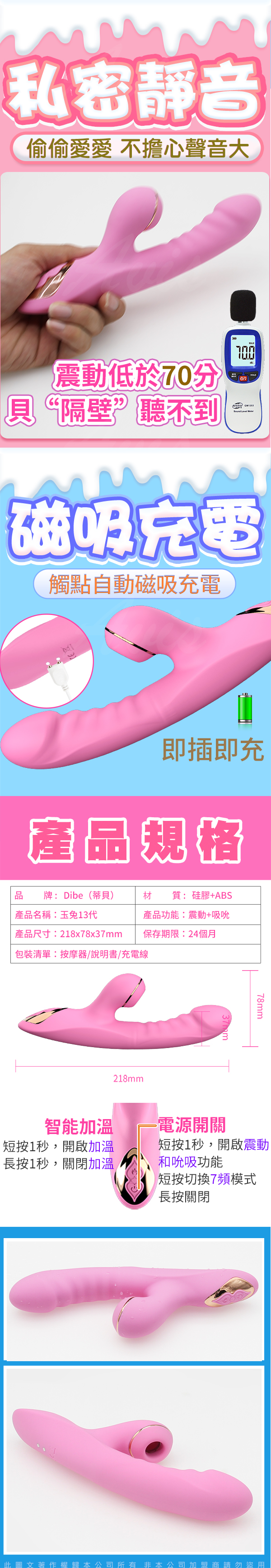 .商品名稱:Dibe-玉兔13代 7段變頻+加溫+吸吮 震動按摩棒