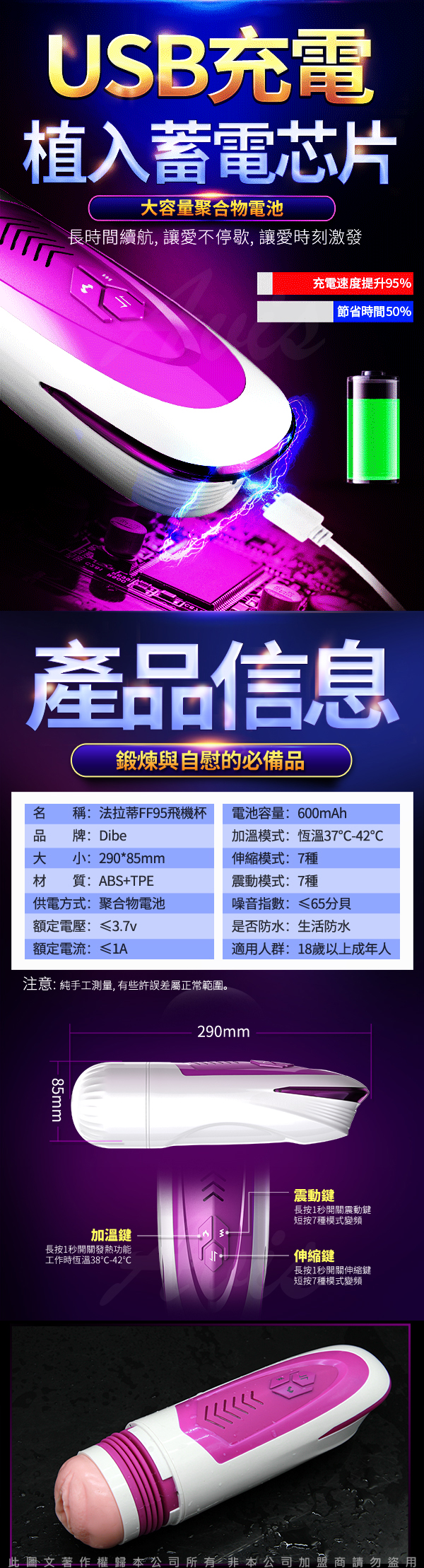 .商品名稱:Dibe-法拉蒂FF95 7x7變頻伸縮震動 智能加溫叫床電動自慰杯