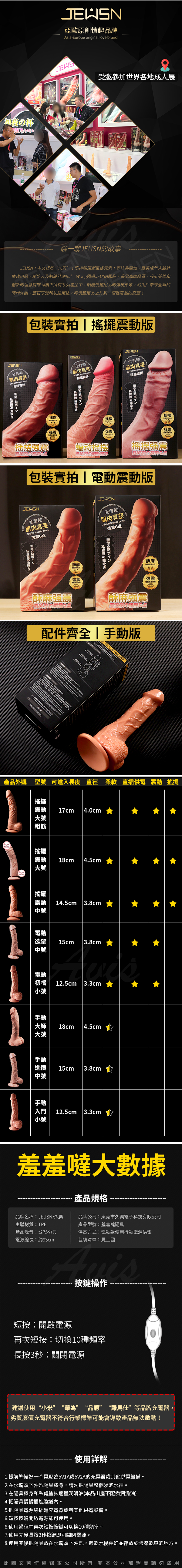 .商品名稱:久興-羞羞噠陽具 10頻 搖擺震動版-大號粗莖 USB直插