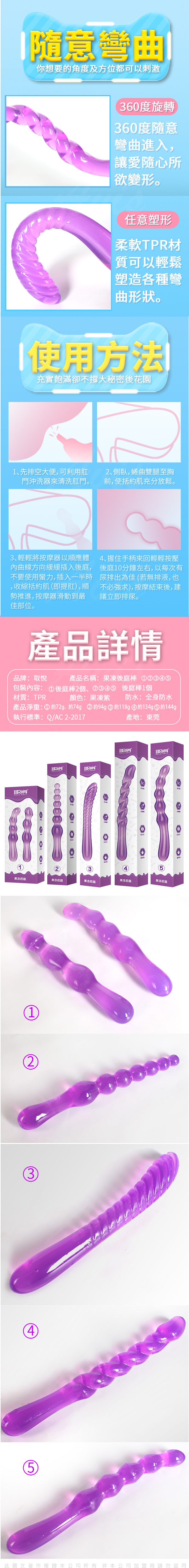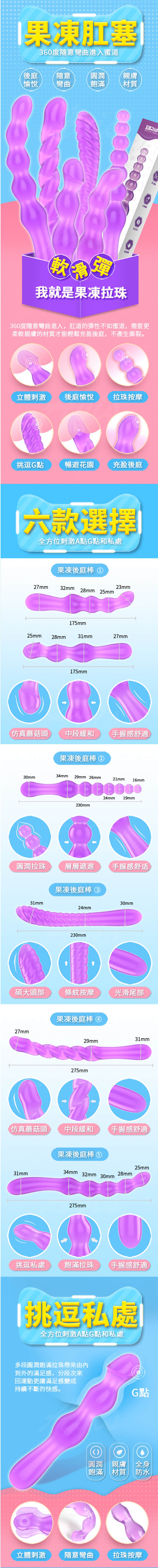 .商品名稱:果凍 360度隨意彎曲光滑觸感後庭棒