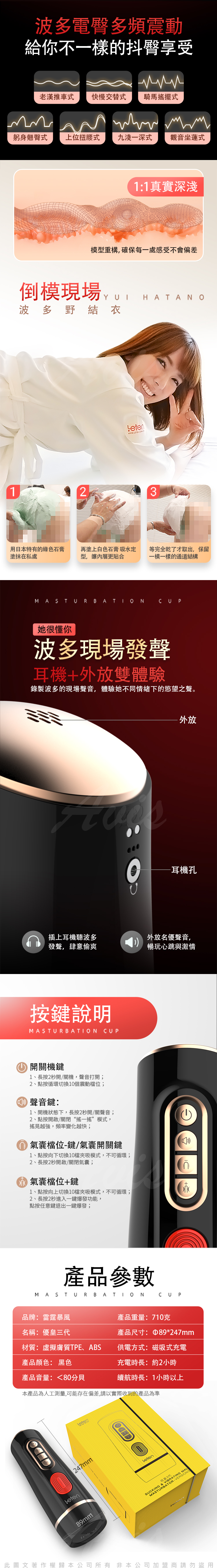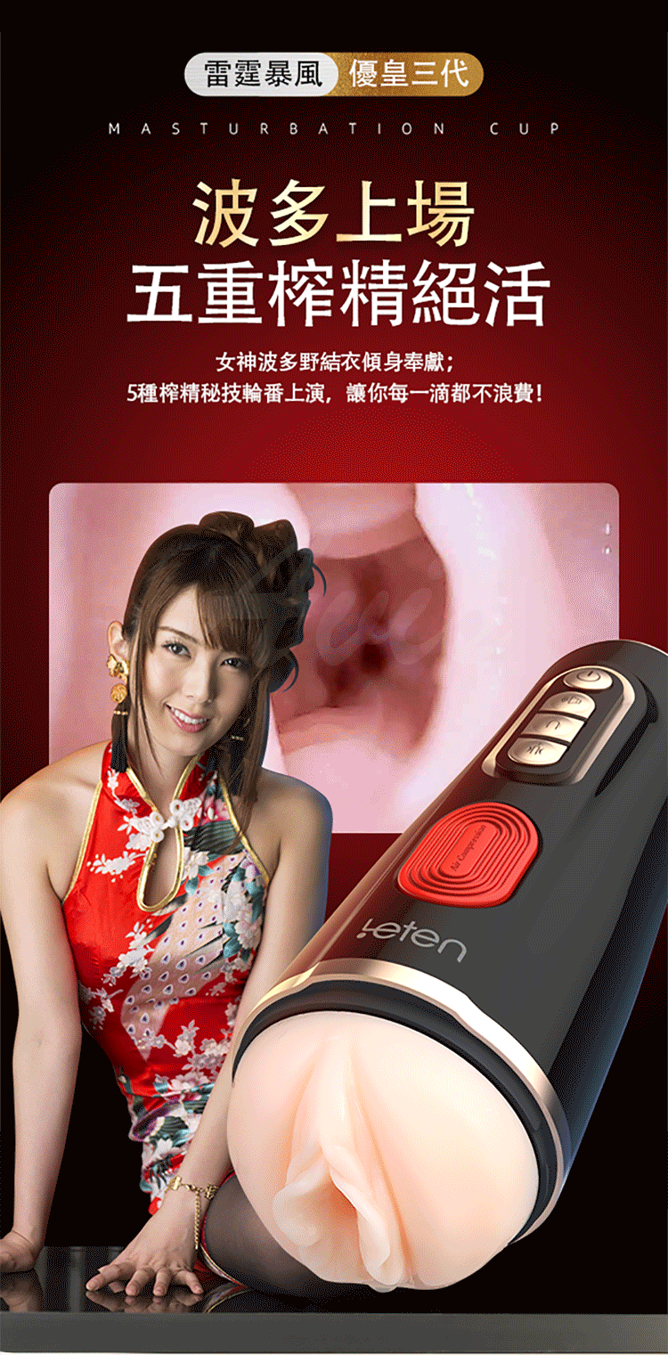 .主商品:Leten-優皇三代 波多野結衣 雙氣囊吸夾 感應互動 智能發音 男用自慰飛機杯
