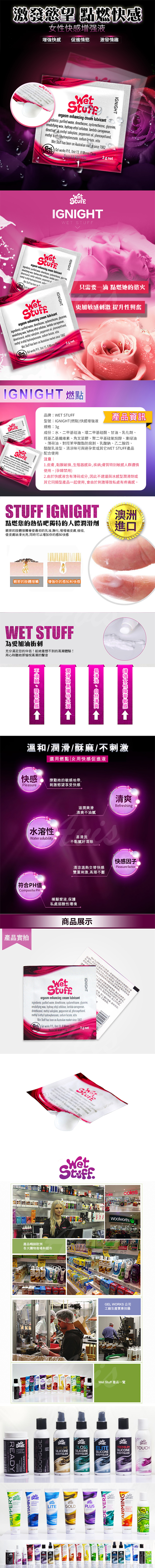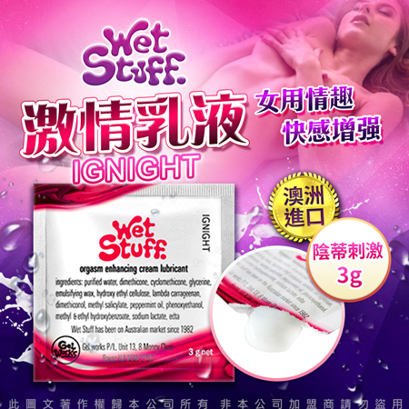 品名:澳洲Wet Stuff IGNIGHT 陰蒂刺激 高潮快感增強 女用激情乳液隨身包 3gx10包