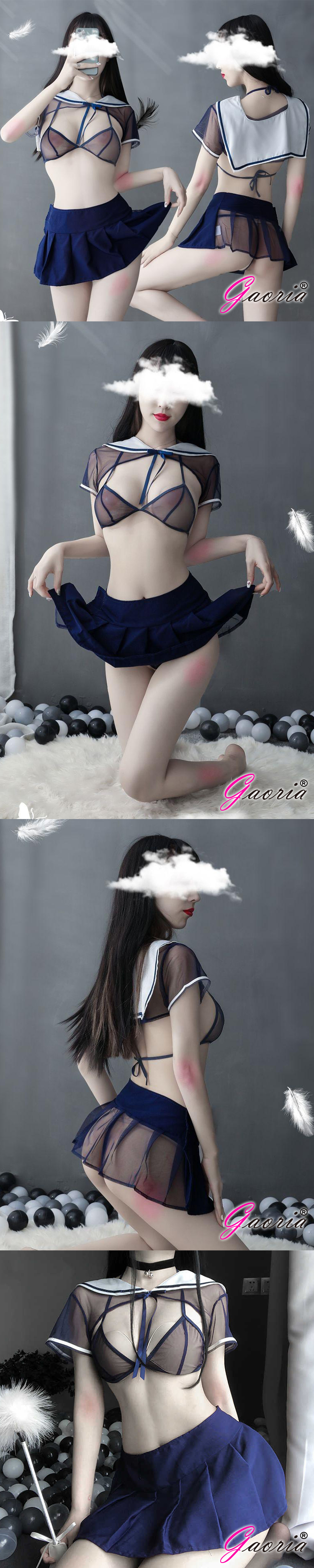 【Gaoria】調情小學妹 日系透明性感水手三點式學生套裝
