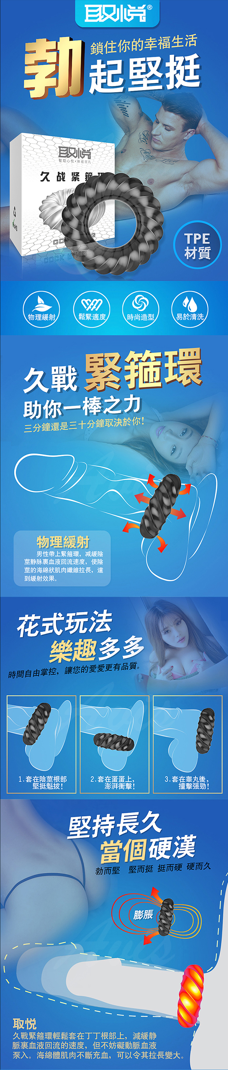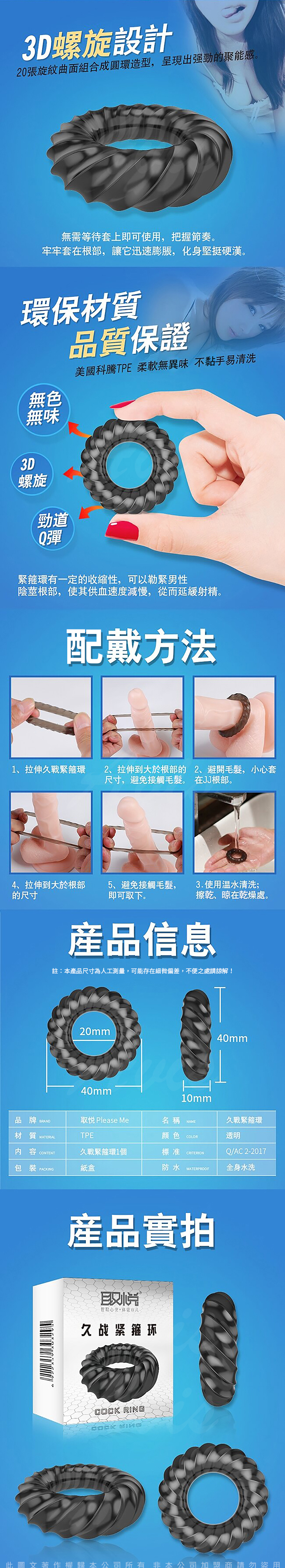 .商品名稱:取悅-久戰 緊箍螺紋曲面矽膠鎖精圓環