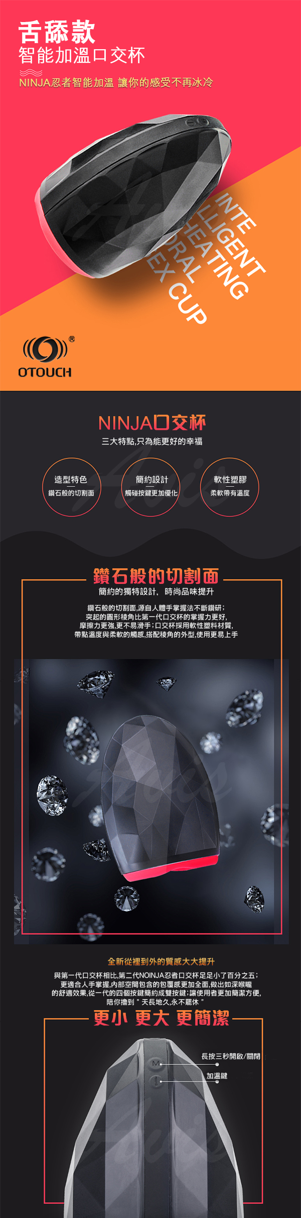 .主商品:OTOUCH NINJA 舔愛忍者 男用全自動加溫鑽石口交飛機杯