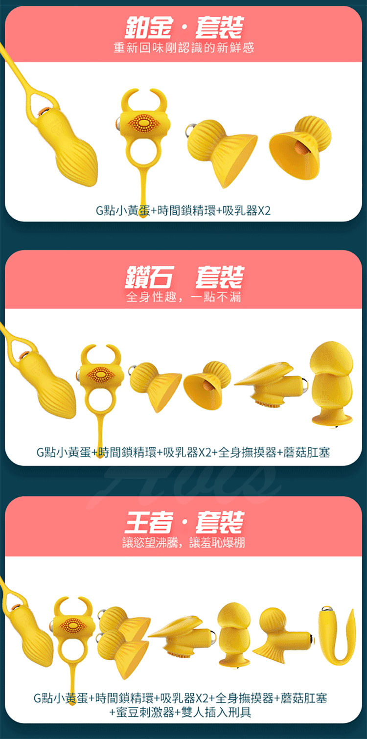 G點小黃蛋+時間鎖精環+吸乳器x2+全身撫摸器+蘑菇肛塞