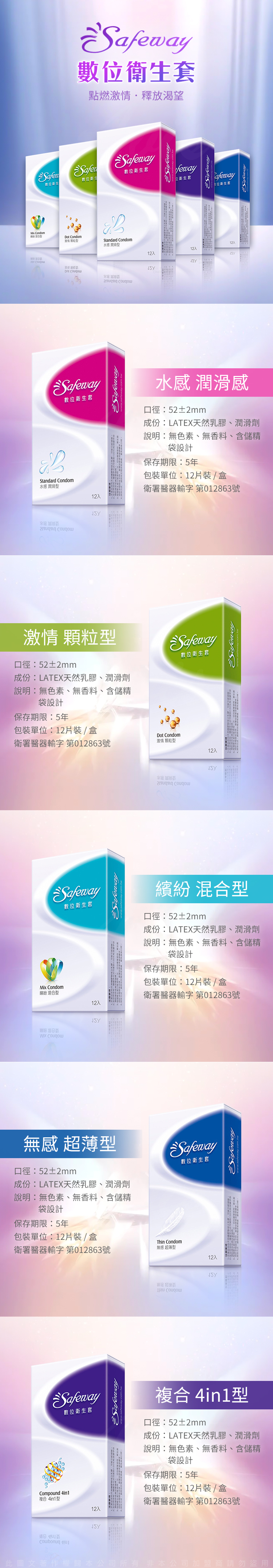 Safeway數位-繽紛混合型 保險套 12入