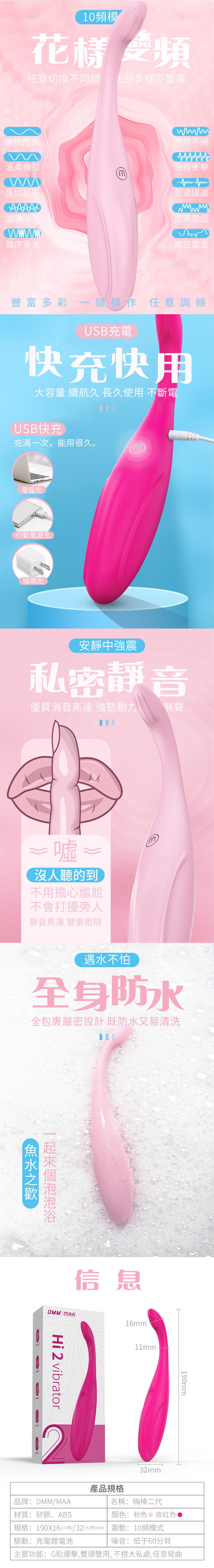 規格:190X16(小棒)/32(大棒)mm 震動:10頻模式