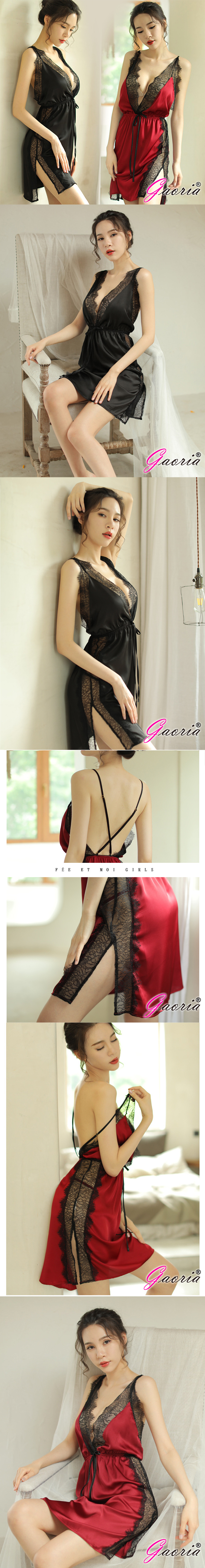 【Gaoria】浪漫花園 露背吊帶開叉睡裙 情趣睡衣-紅
