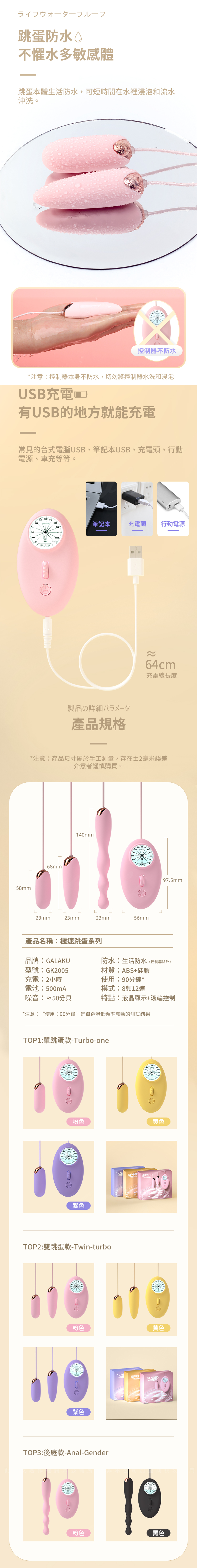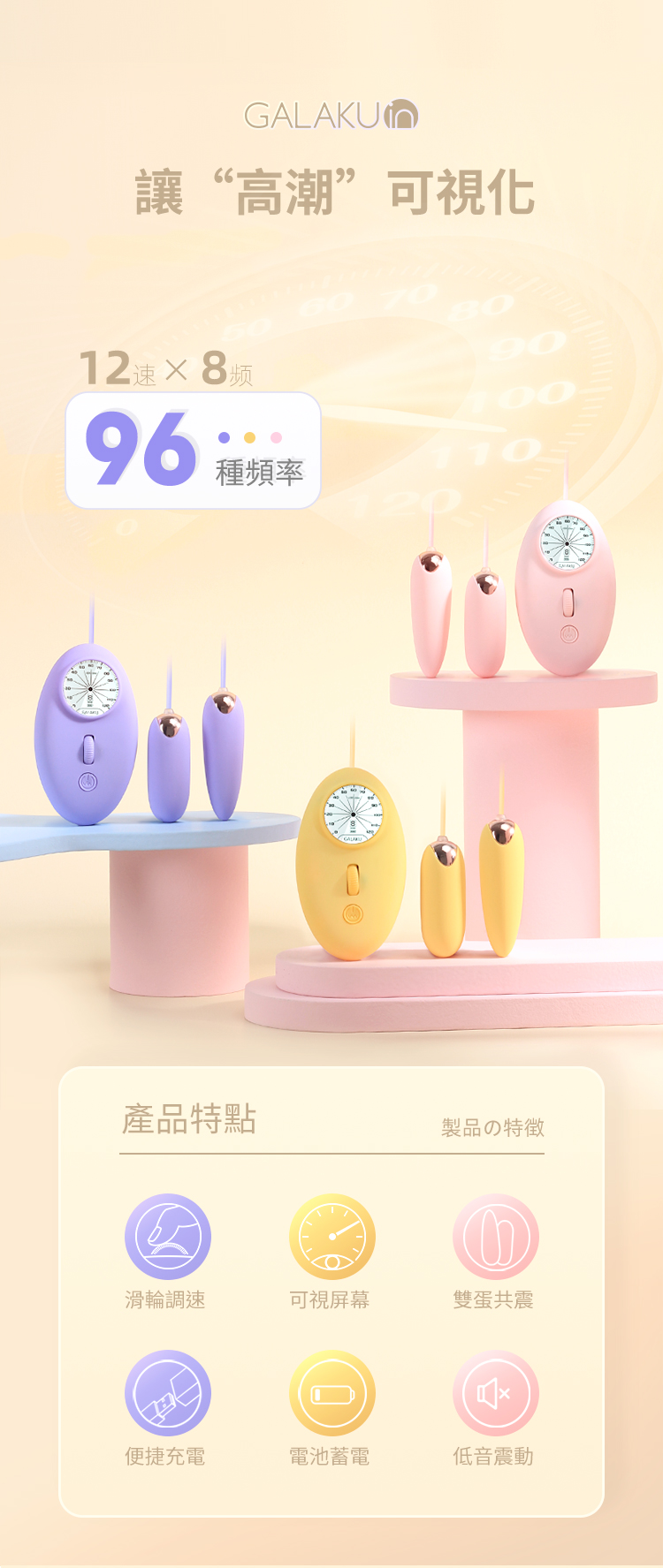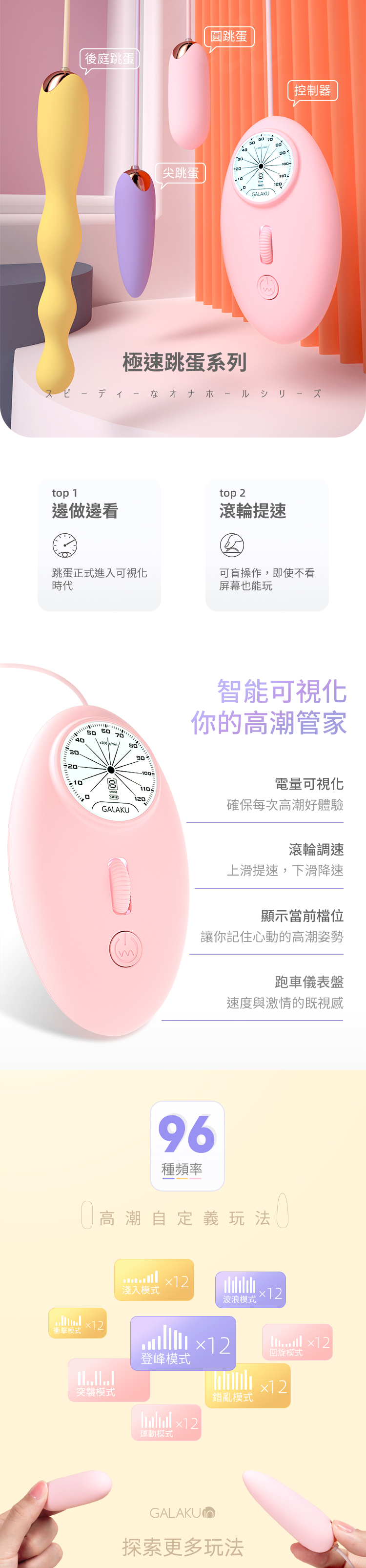 產品名稱:GALAKU-12速8頻極速防水單跳蛋-粉色