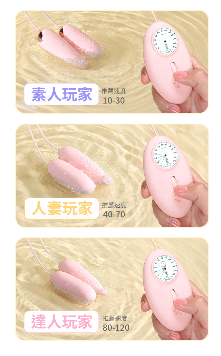 極速跳蛋系列讓高潮正式進入可視化時代,滾輪調速可盲操作,即使不看屏幕也能玩,上滑提速,下滑降速。如跑車儀錶盤速度與激情的既視感。跳蛋本體生活防水,可短時間在水裡浸泡和流水沖洗。使用低噪音震動馬達,夜深人靜中使用安靜不吵鬧,不怕鄰居聽見。