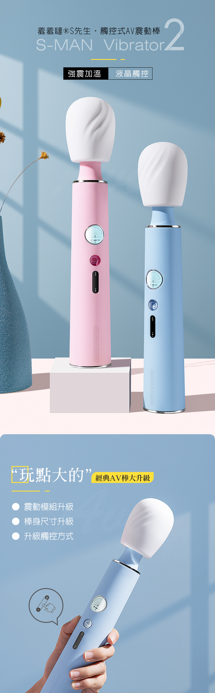 名稱:羞羞噠-S先生 智能恆溫 液晶觸控 AV震動棒-粉